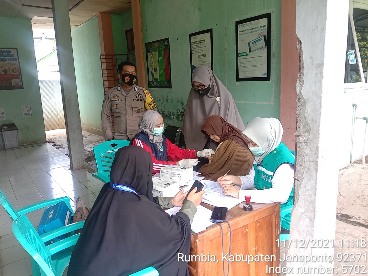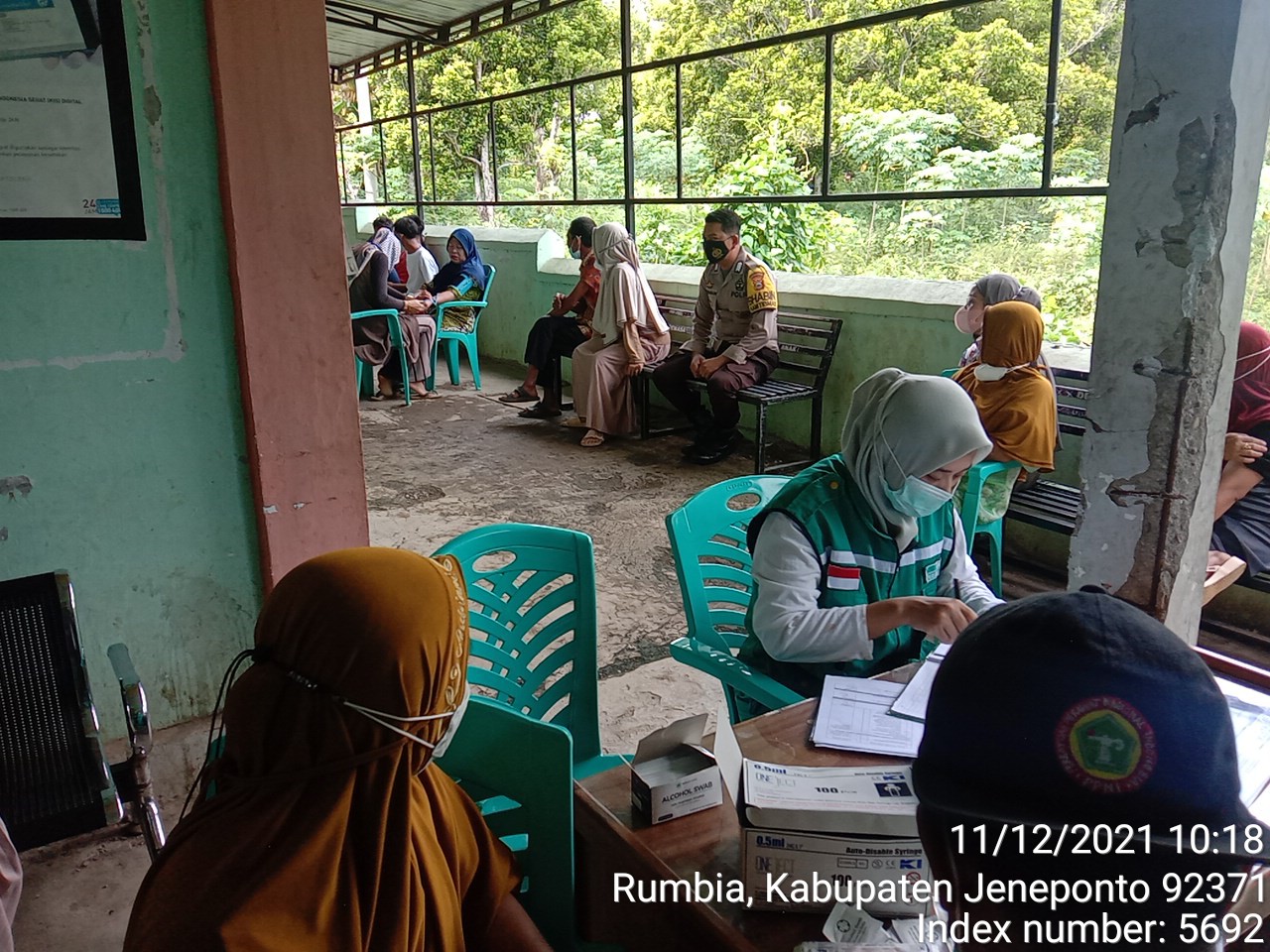 PENJURU. ID | Jeneponto – Berlokasi di kantor Puskesmas Rumbia kembali dilaksanakan kegiatan vaksinasi kepada warga masyarakat Desa Rumbia, Sabtu (11/12/2021)