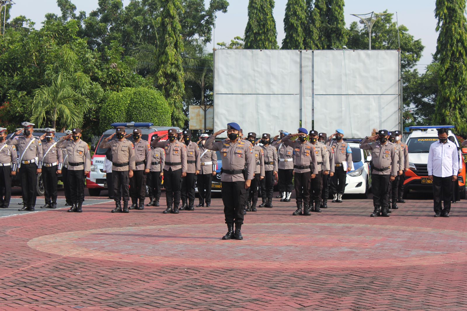 PENJURU.ID | Probolinggo – Kepolisian Resor (Polres) Probolinggo Polda Jawa Timur menggelar apel gelar pasukan pamor keris (Patroli Motor Penegakan Protokol Kesehatan) di masyarakat wilayah Kabupaten Probolinggo, Jawa Timur.