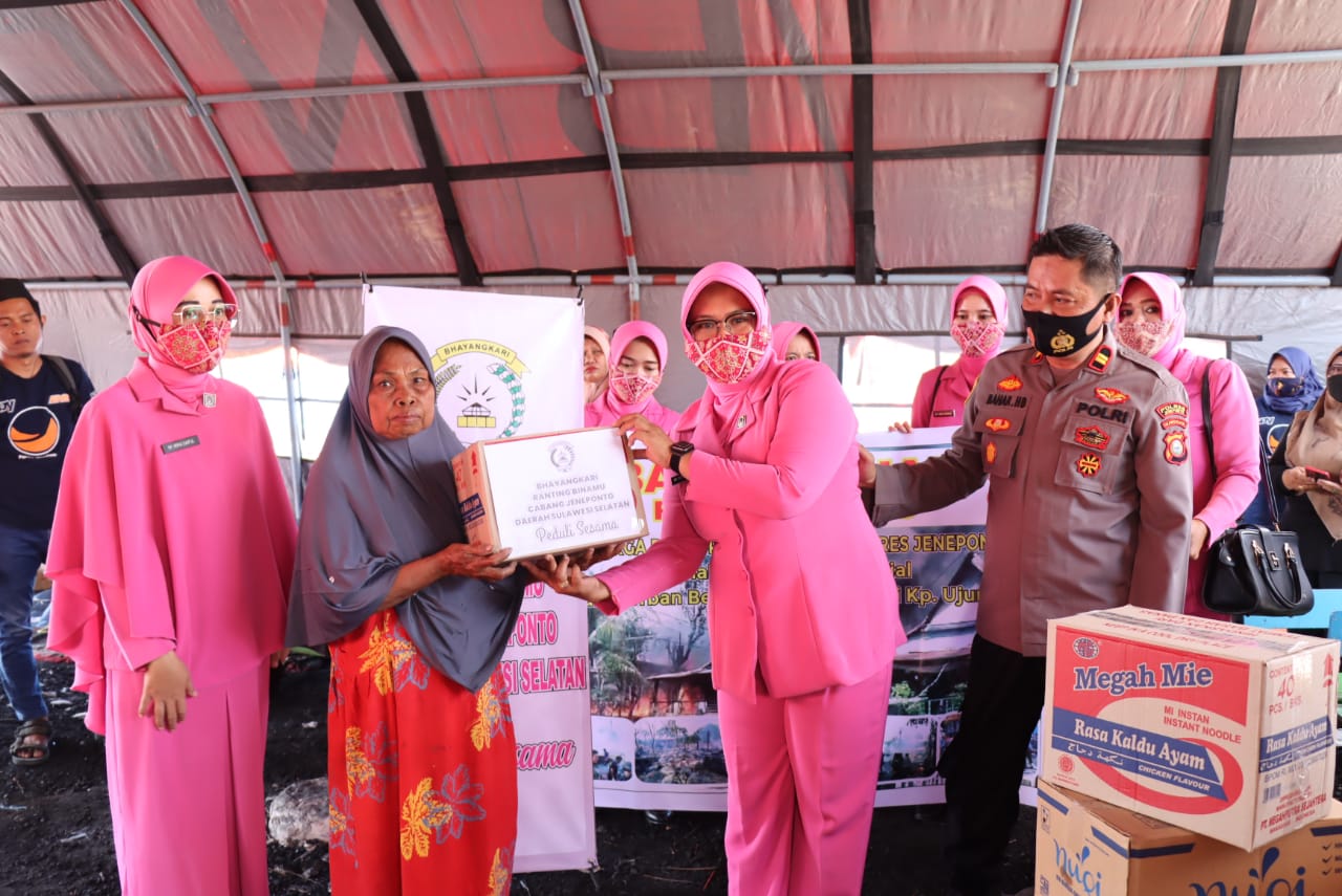 PENJURU. ID | Jeneponto – Kapolsek Binamu Iptu Baharuddin,M S.Sos beserta Bhayangkari ranting binamu melaksanakan penyerahan bantuan kepada korban kebakaran rumah berlokasi di Lingkungan Ujung Loe Timur Kelurahan Biringkassi Kecamatan Binamu, Jumat (8/4/2022)