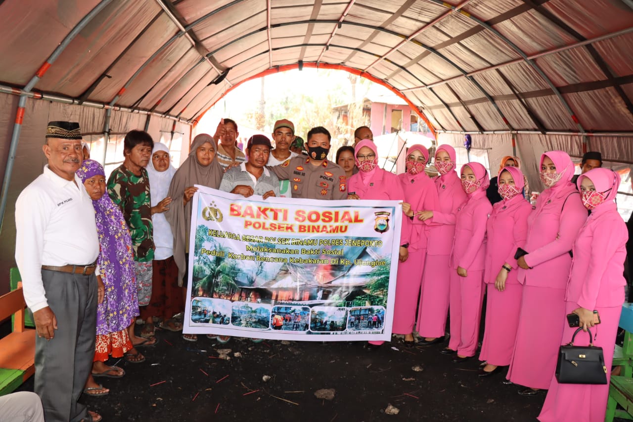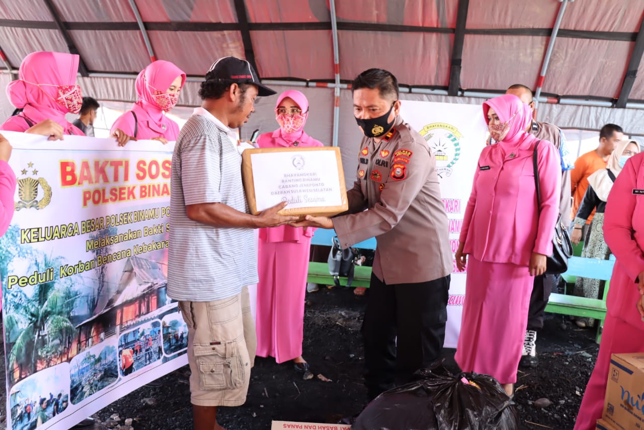 Pemberian bantuan berupa sembako dan pakaian kepada para korban bencana kebakaran yang terjadi beberapa waktu lalu. Jajaran polsek binamu hadir berikan bantuan itu.