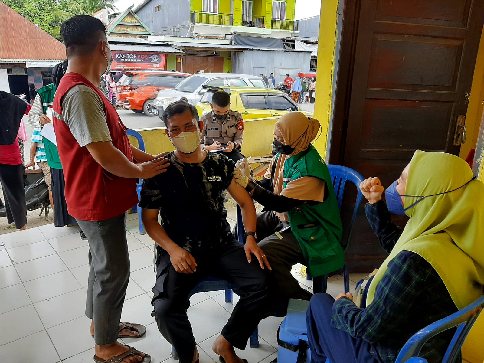 “Banyaknya masyarakat yang masih ragu dampak Vaksin akibat berita hoax, sehingga saya jadikan momen kali ini untuk memperlihatkan bahwa saya sudah melakukan vaksin tahap 1 dan 2 bahkan kini saya di berikan vaksin ke tiga.” tutuo Bripka Syamsu Alam