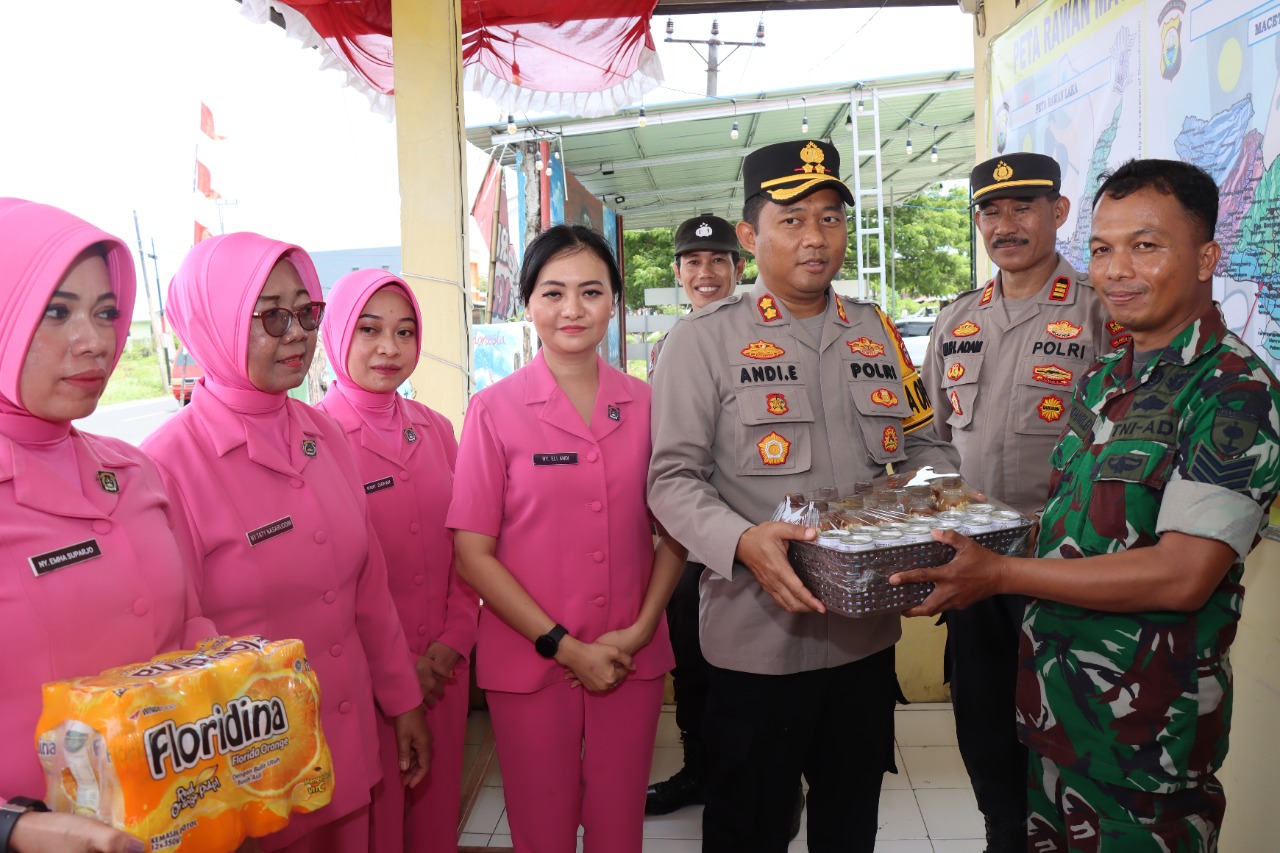 Dilokasi tersebut, Ketua Bhayangkari Cabang Jeneponto Ny.Elli Andi Erma menyerahkan bingkisan kepada petugas posyan boyong yang diterima oleh AKP Muh Adam, SH mewakili petugas yang melaksanakan piket jaga posyan hari ini,Ny Elli Andi Erma juga berkesempatan mengisi buku tamu di pos pelayanan boyong.