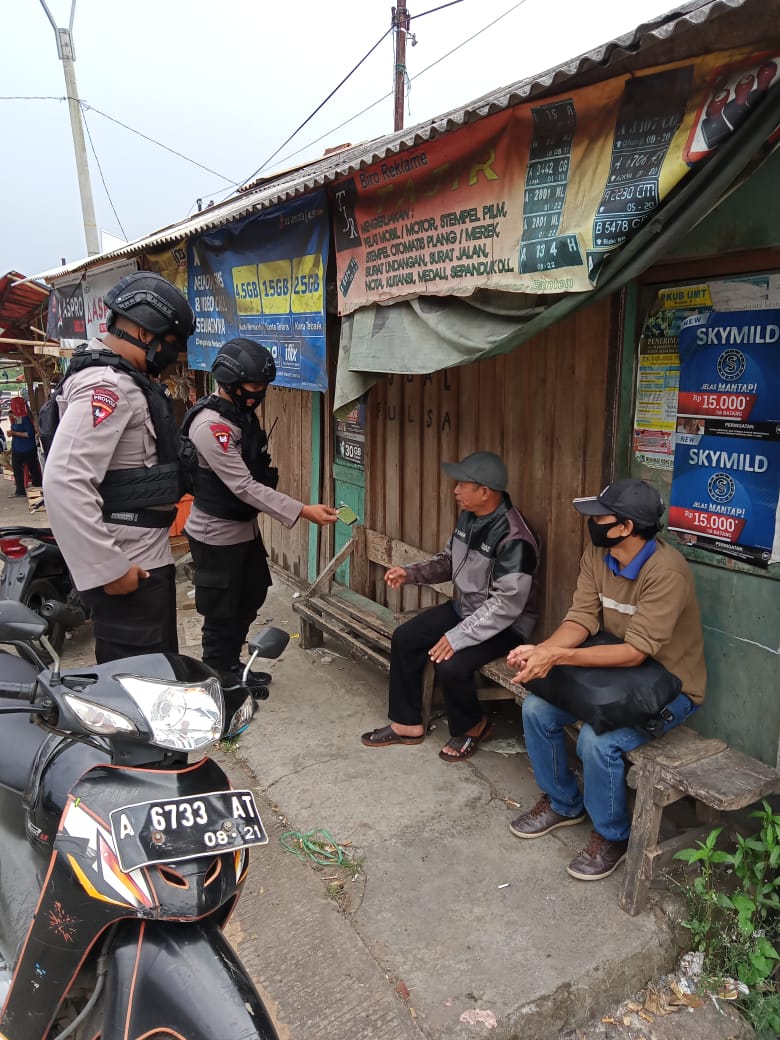 “Personil Patroli memberikan imbauan pada masyarakat untuk tetap menggunakan masker, cuci tangan dengan sabun atau menggunakan Hand Sanitizer serta tetap jaga jarak dan juga Inpres No. 6 tahun 2020”.