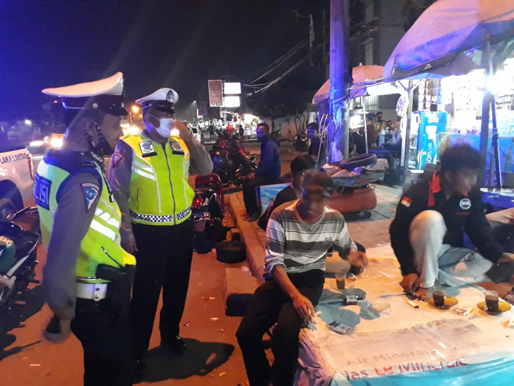 PENJURU.ID | Serang – Dalam rangka mendisiplinkan warga jelang penerapan new normal, personel Ditlantas Polda Banten yang diantaranya Kompol Bambang S, Bripka Haris Budianto Sh, Brigadir Agus H, Brigadir Dirga, Briptu Fauzy, Briptu Nanut, Bripda Riyandi melaksanakan Kegiatan Kepolisian Yang Ditingkatkan (KKYD) melalui patroli dialogis, di wilayah hukum Polda Banten, Sabtu (11/7/2020) pukul 21.00 wib.