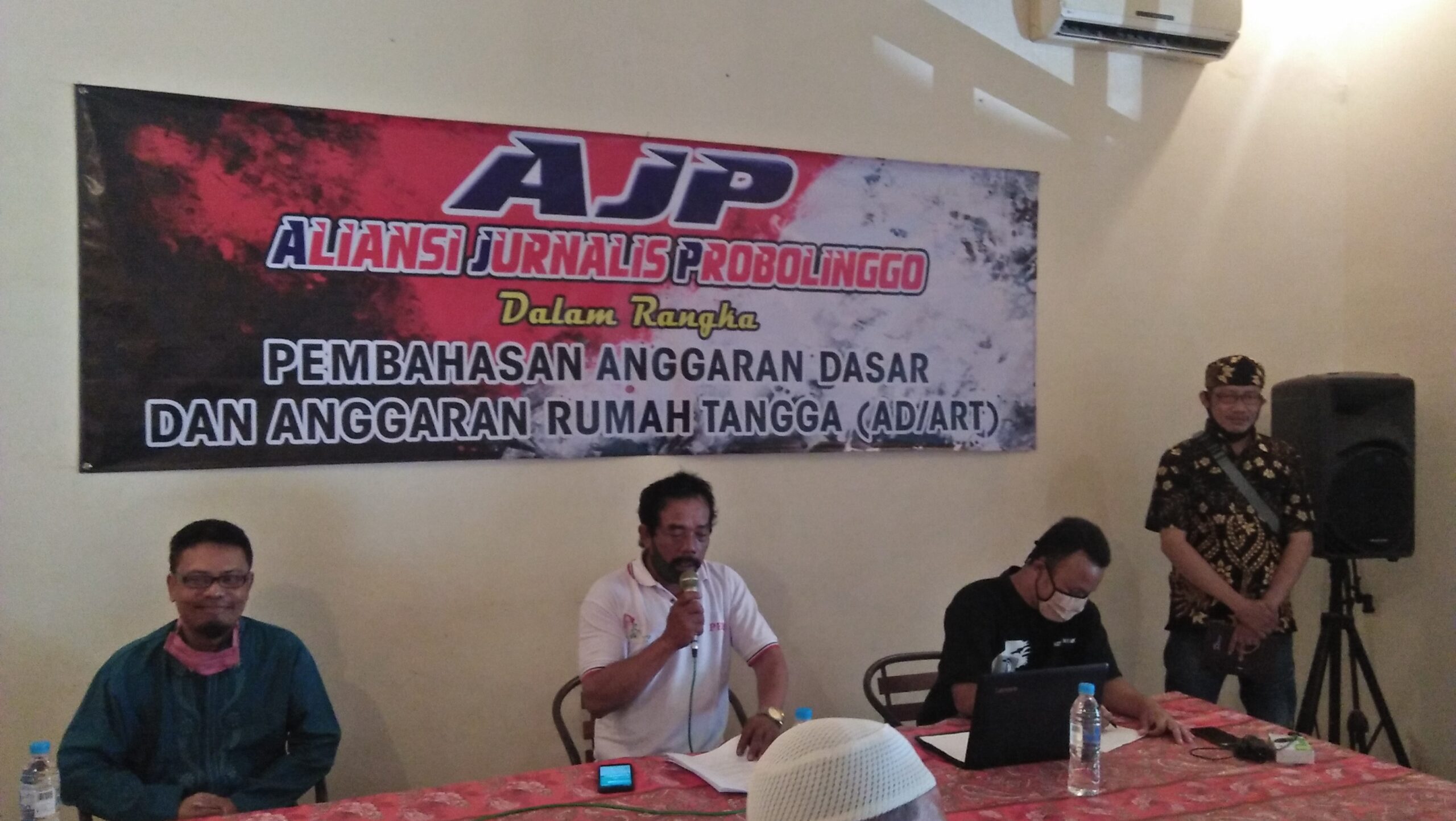 PENJURU.ID | Probolinggo – Dalam rangka proses pengesahan AJP ( Aliansi Jurnalis Probolinggo ) dan pembahasan Anggaran Dasar dan Anggaran Rumah Tangga (AD/ART) acara yang berlangsung di Home stay, Sinar Harapan, Kota Probolinggo pada Kamis (20/08/2020) dengan 35 anggota undangan .