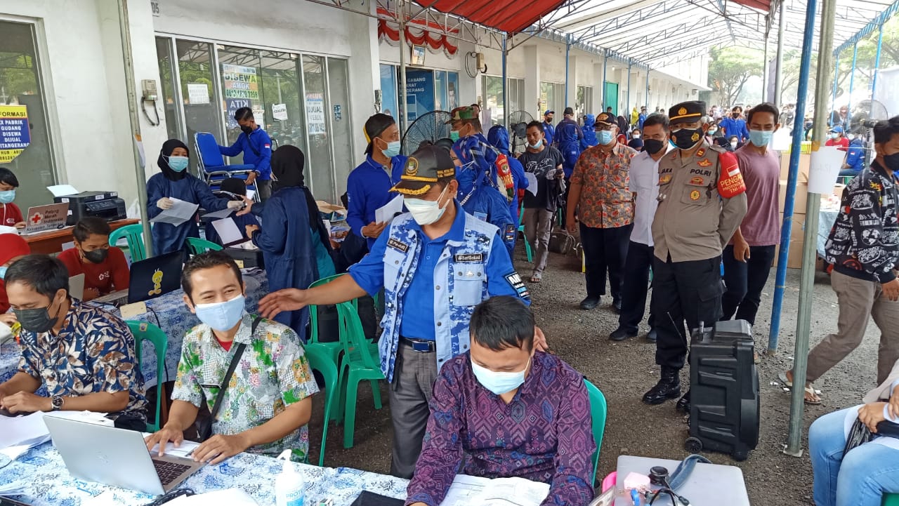 PENJURU.ID | Kab. Tangerang – Partai Demokrat Kabupaten Tangerang menggandeng Dinas Kesehatan Provinsi Banten, Dinas Kesehatan Kabupaten Tangerang, PMI Kabupaten Tangerang dan Puskesmas Sepatan untuk menggelar vaksinasi massal bagi masyarakat guna memenuhi herd immunity dan memutus mata rantai penyebaran Covid-19 di Kabupaten Tangerang. Kamis, (19/8/2021).