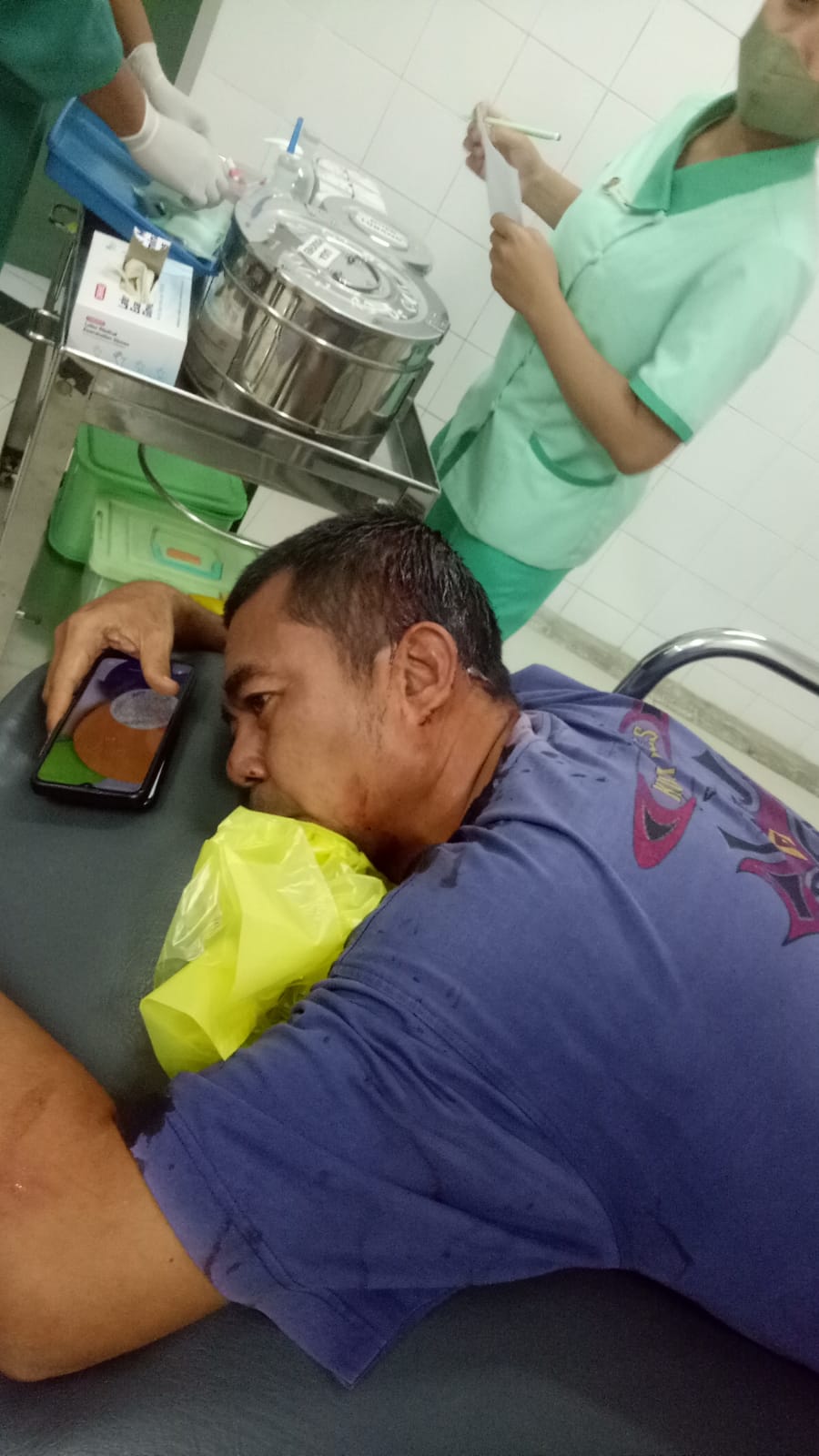 Meski kepalanya dipukul dengan batu paving oleh pelaku namun syahirul bisa lolos dan mempertahankan kendaraannya.