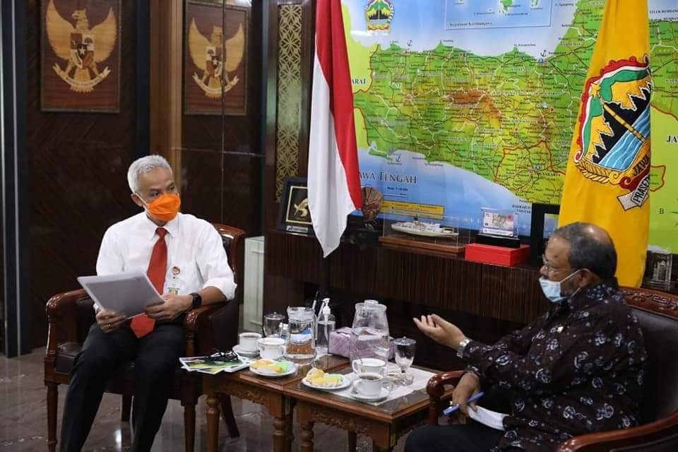 PENJURU.ID | Semarang – Duta Besar India untuk Indonesia, Manoj Kumar Bharti menemui Gubernur Jawa Tengah, Ganjar Pranowo, Senin (24/5). Dalam pertemuan yang digelar di ruang kerja Ganjar itu, dibahas sejumlah persoalan, diantaranya peluang investasi.