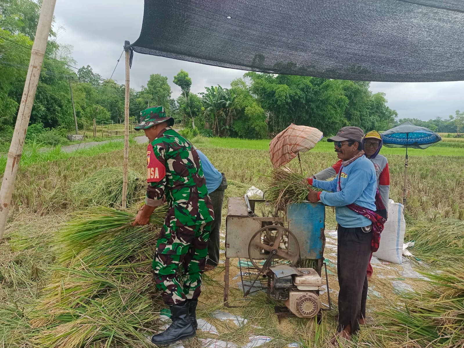 Bertempat di lahan pertanian milik salah satu warga di Desa Bimo, Kecamatan Pakuniran , Kabupaten Probolinggo. Koramil 0820/17 Pakuniran melakukan komunikasi sosial (Komsos) pendampingan dalam proses panen padi.