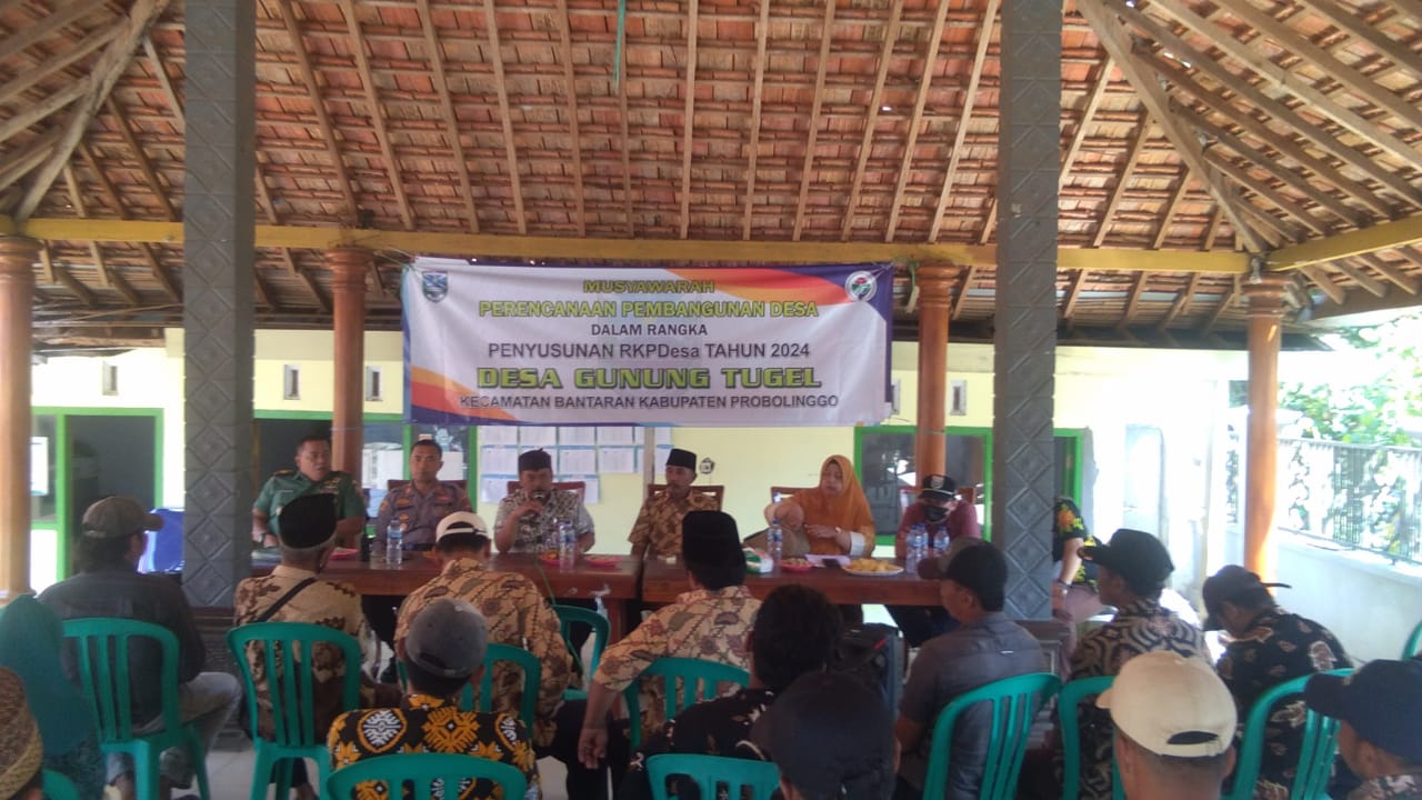 PENJURU.ID | Probolinggo – Danramil 0820/ 04 Bantaran Kapten Czi Bagus Handoko menghadiri rapat Musyawarah Rencana Pembangunan Desa (Musrenbangdes) Desa TA 2024 bertempat di kantor Desa Gunung Tugel Kecamatan Bantaran Kabupaten Probolinggo.Jumat (25/8).