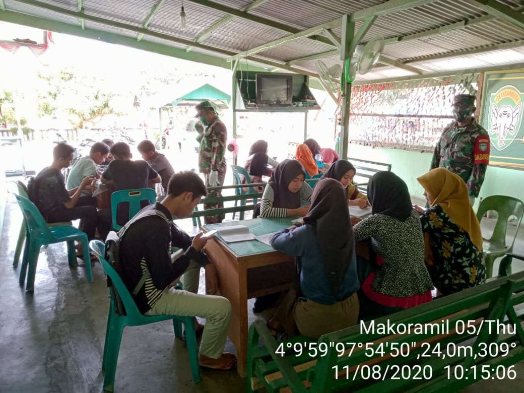 PENJURU.ID | Aceh Tamiang – Pengawasan dan pendampingan kegiatan pembelajaran melalui jaringan internet bagi siswa/siswi, Kodim 0117/Atam dukung sekolah daring melalui Koramil-Koramil jajarannya untuk menyediakan WiFi gratis bagi anak-anak yang kurang mampu, Rabu (12/08/2020).