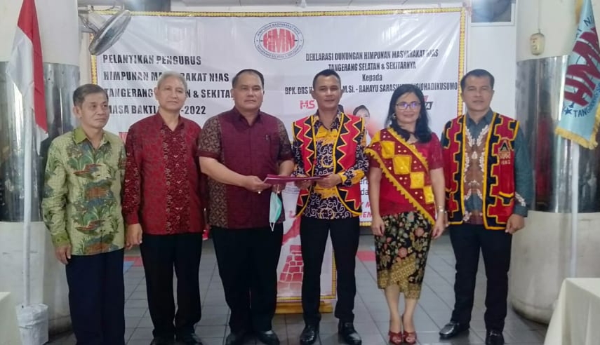 Selanjutnya acara dilanjutkan dengan deklarasi dukungan Organisasi Himpunan Masyrakat Nias (HMN) Tangsel terhadap Pasangan Calon (Paslon) Walikota dan Wakil Walikota Kota Tangsel, Muhammad-Saraswati untuk memimpin Tangsel untuk periode berikutnya.
