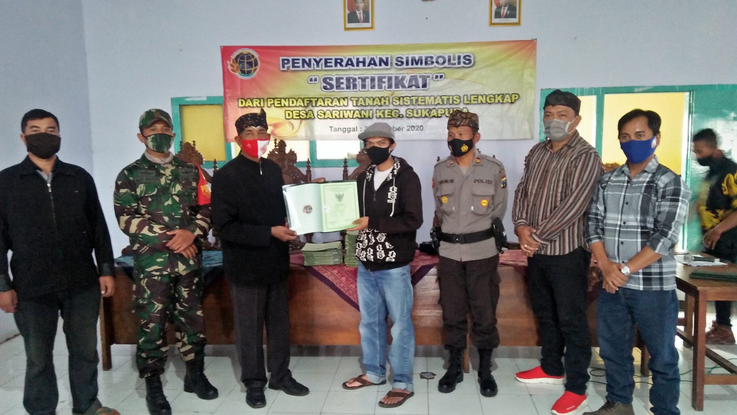 Kades Desa Sariwani, dalam pantauan media, penjuru.id Sabtu (24/10/2020) Sukaryo, dalam sambutanya, menghimbau kepada masyarakat yang telah ikut progam (PTSL), yang dibagikan sebanyak 100 sertifikat, yang merupakan tahap 2, untuk menyimpan sertifikatnya, karena sertifikat merupakan bukti kepemilikan yang sah, jangan di salah gunakan peruntukkanya, atau jangan sampai di pindah tangankan ke pihak lain kecuali sudah terjadi proses transaksi jual beli dengan sesuai ketentuan yang berlaku.