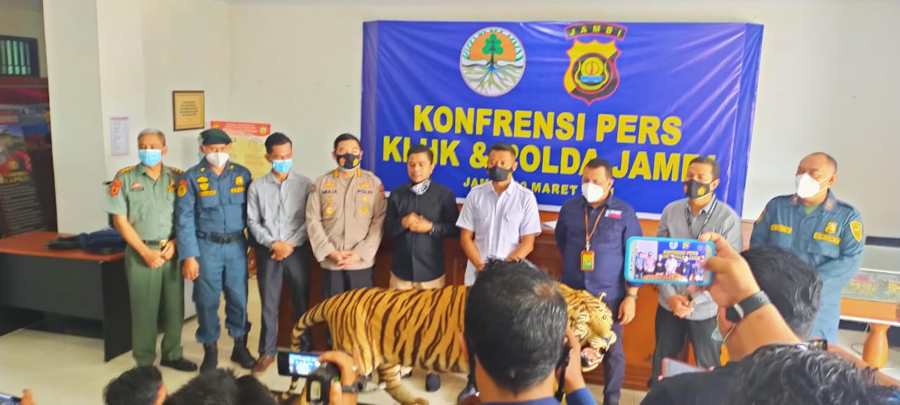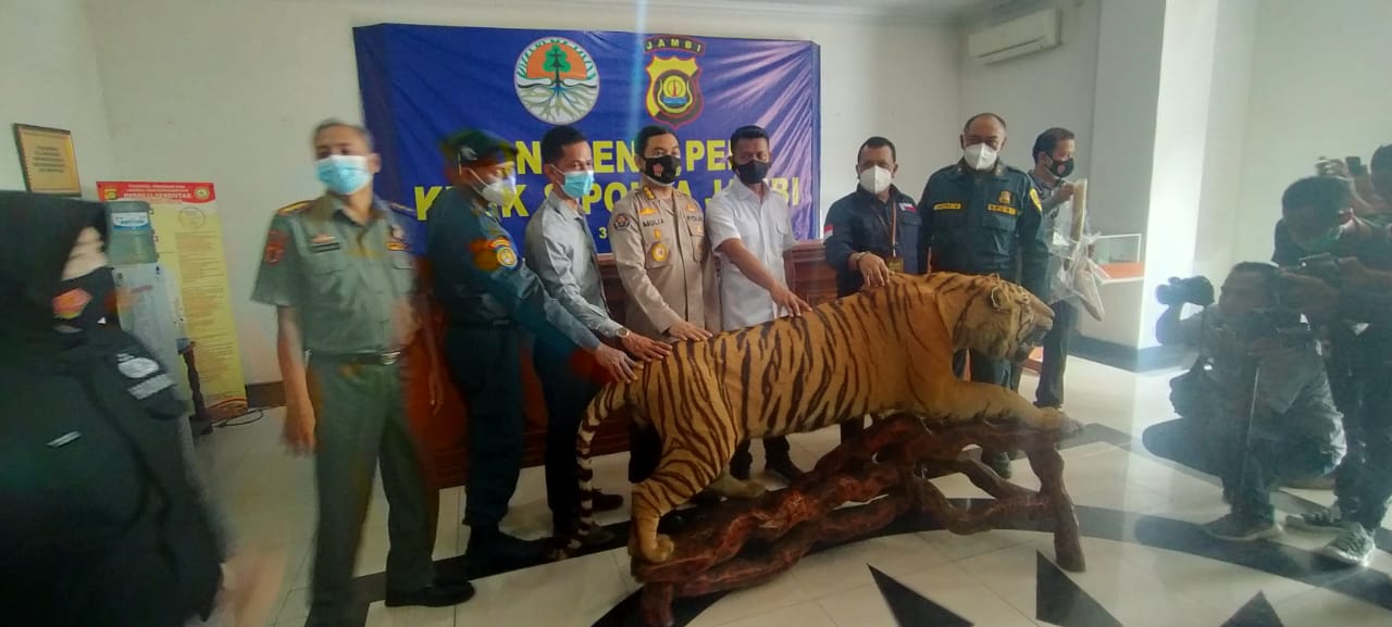 PENJURU.ID | Jambi – Selasa (30/03/2021), Balai Penegakan Hukum (Gakkum) KLHK Wilayah Sumatera bersama Polda Jambi berhasil menggagalkan penjualan opsetan Harimau Sumatra dan dua gading gajah. Tim operasi berhasil menangkap Pelaku perdagangan ilegal satwa dilindungi dan bagiannya berupa opsetan Harimau Sumatera (Panthera tigris sumatrae), pada 23 Maret 2021, di Kabupaten Merangin, Provinsi Jambi. Selanjutnya, tim juga berhasil menangkap pelaku perdagangan Gading Gajah (Elephas maximus sumatranus), pada 24 Maret 2021, di Kabupaten Muaro Bungo Provinsi Jambi.