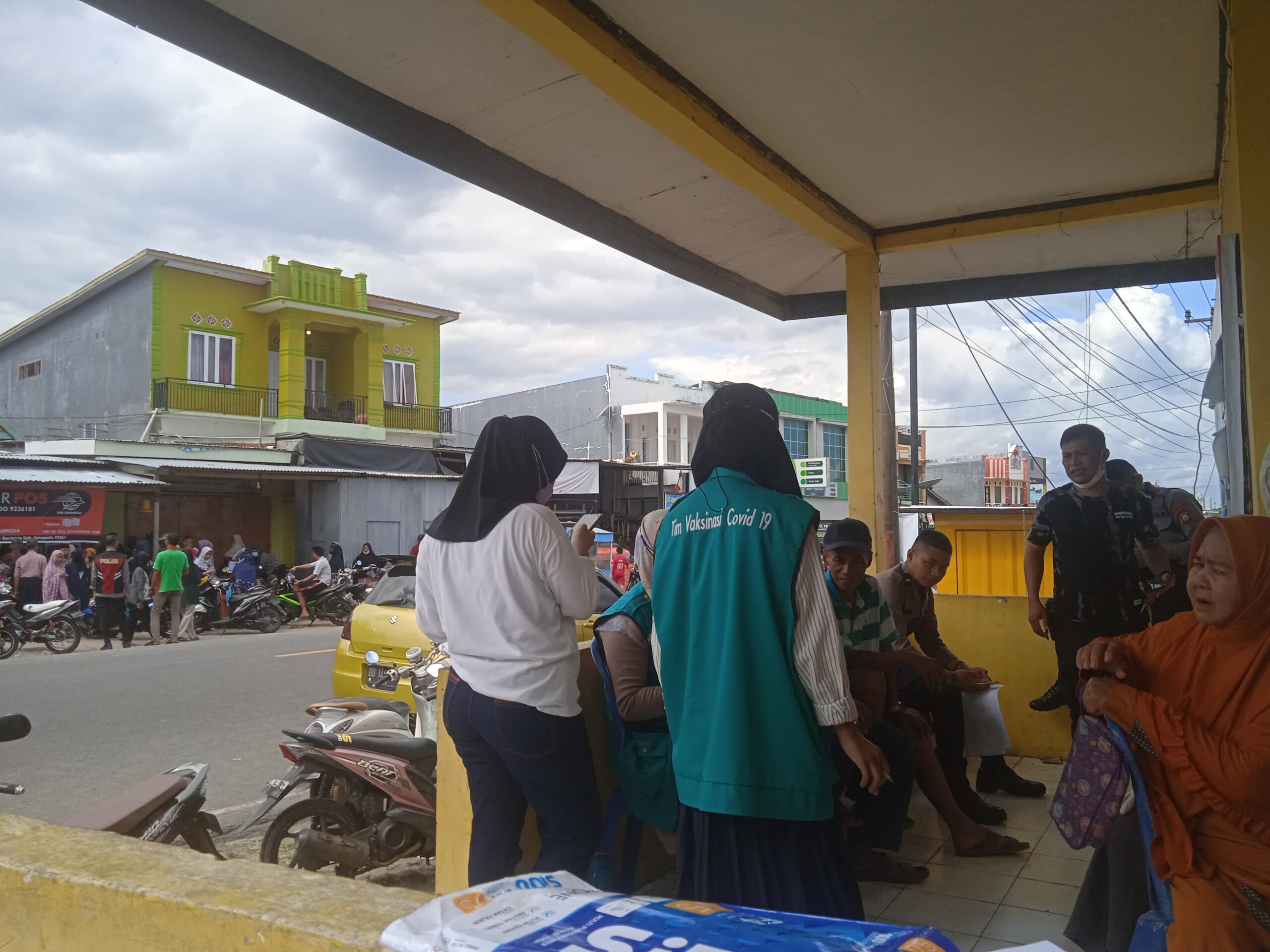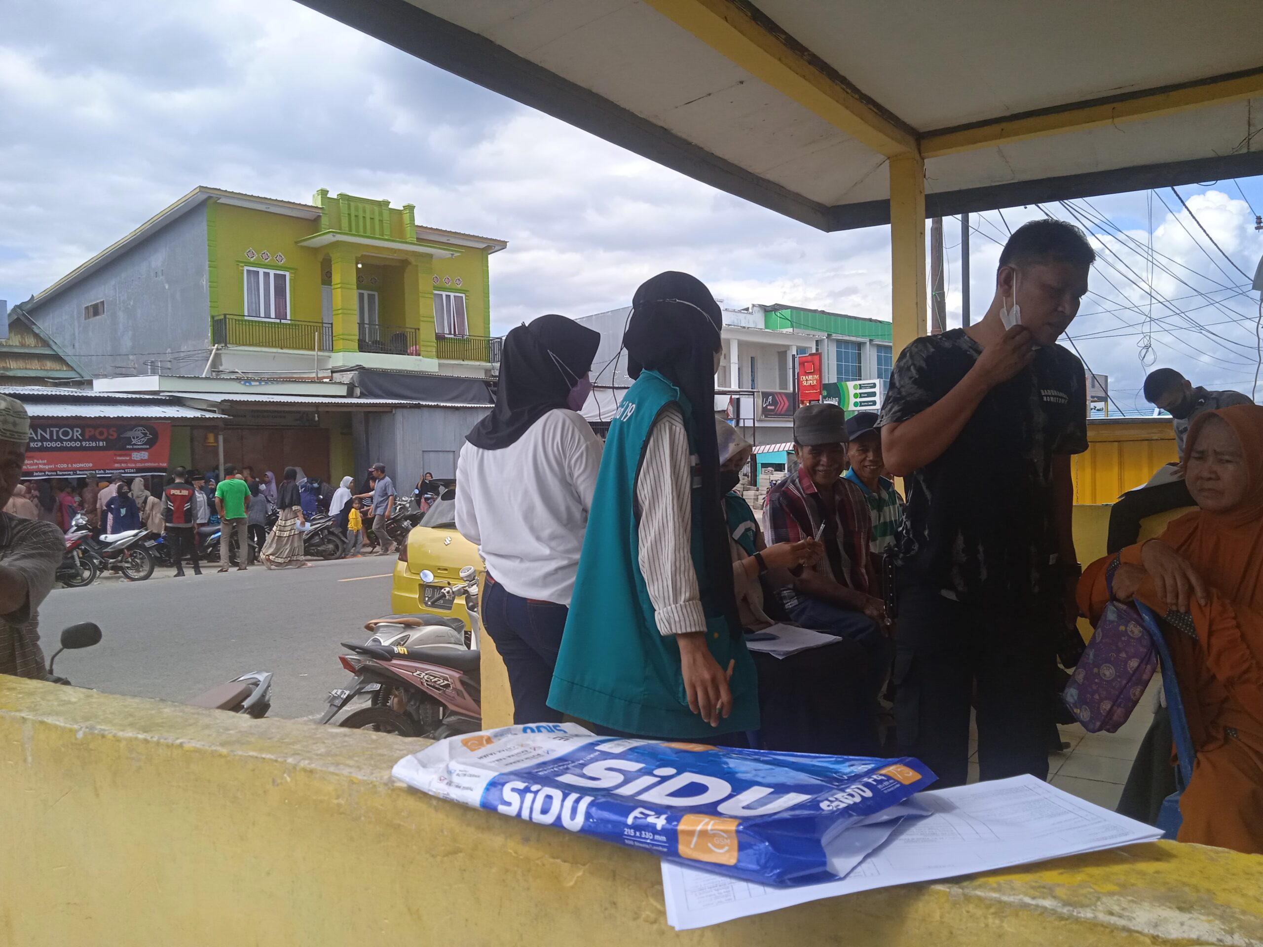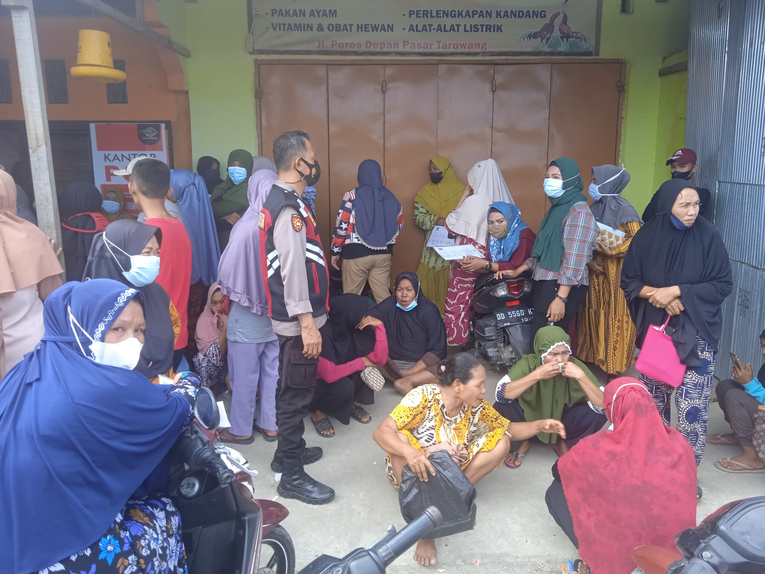Pemberian Bantuan Pangan Non Tunai (BPNT) kepada Keluarga Penerima Manfaat (KPM) berlangsung mulai dari pagi hingga sore hari memadati Kantor Pos Unit Tarowang dan di Kawal pelaksanaan Vaksinasi Covid-19 oleh tim Vaksinator Puskesmas Tarowang.