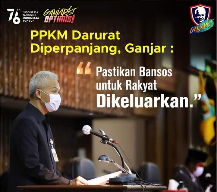 PENJURU.ID | SEMARANG – Gubernur Jawa Tengah, Ganjar Pranowo meminta semua pihak memastikan bantuan sosial untuk masyarakat tersalurkan. Hal ini menyusul keputusan pemerintah memperpanjang PPKM Darurat hingga 25 Juli nanti.