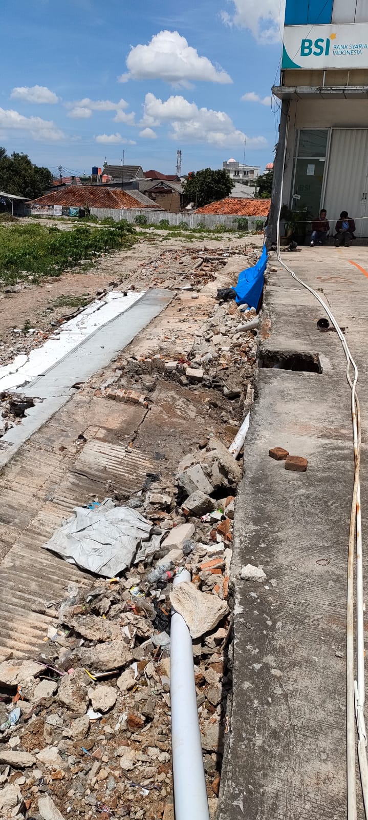 PENJURU.ID| TANGERANG – Sebuah bangunan gedung 3 Lantai milik Bank Syariah Indonesia (BSI) Kantor Cabang Tangerang, yang berada di Jl.Gatot Subroto RT.003/RW 001 Sangiang jaya Kota Tangerang, baru baru ini menjadi sorotan. Pasalnya, terlihat longsor di salah satu sisi bangunan, dengan panjang mencapai kurang lebih 10 meter persis di sepanjang pondasi bangunan.