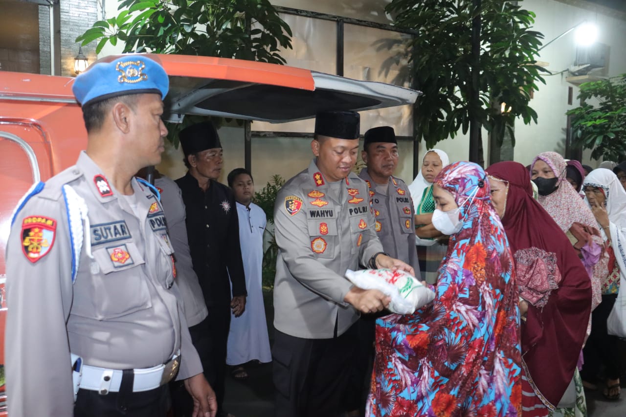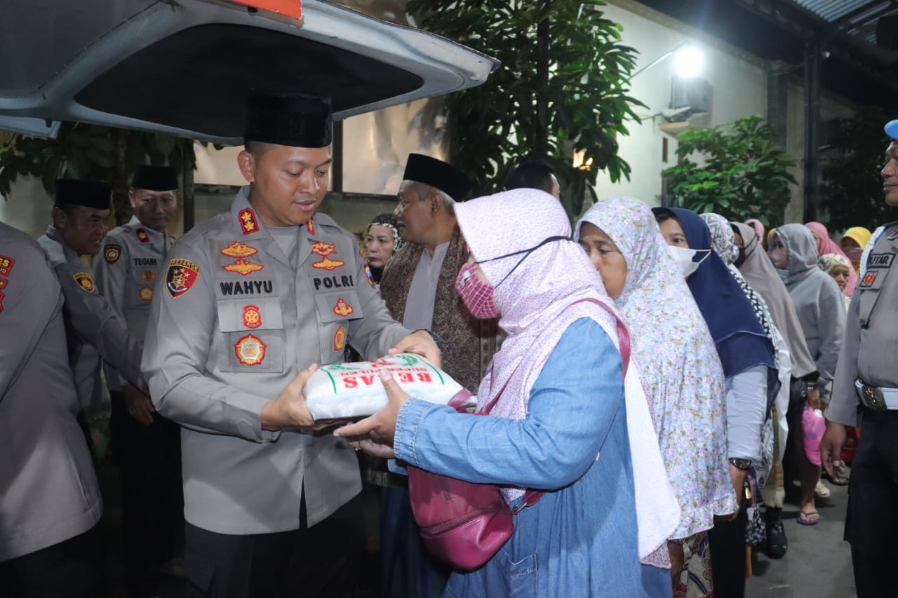 Setelah Subuh Curhat, kegiatan dilanjutkan dengan pembagian bantuan sosial berupa beras oleh Kapolres Sukoharjo untuk jamaah sholat Subuh di Masjid Wisanggeni Kecamatan Gatak.