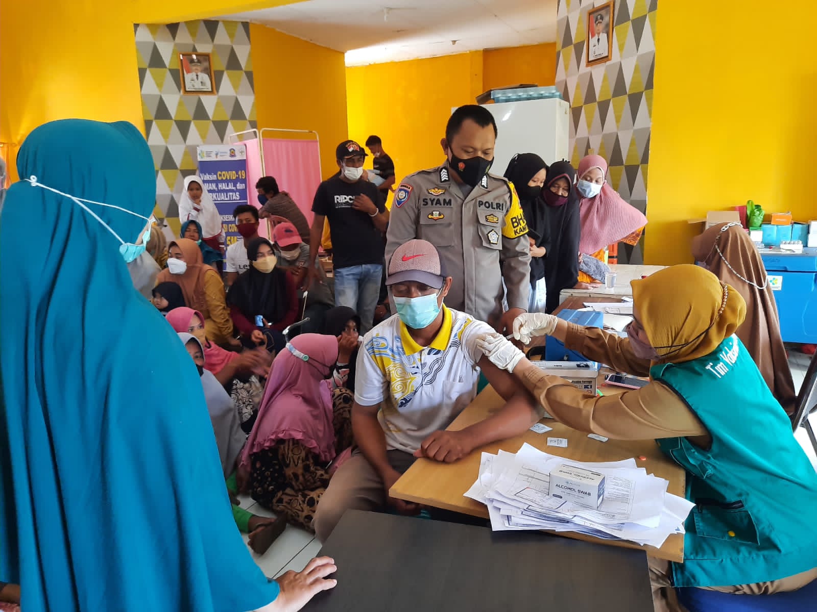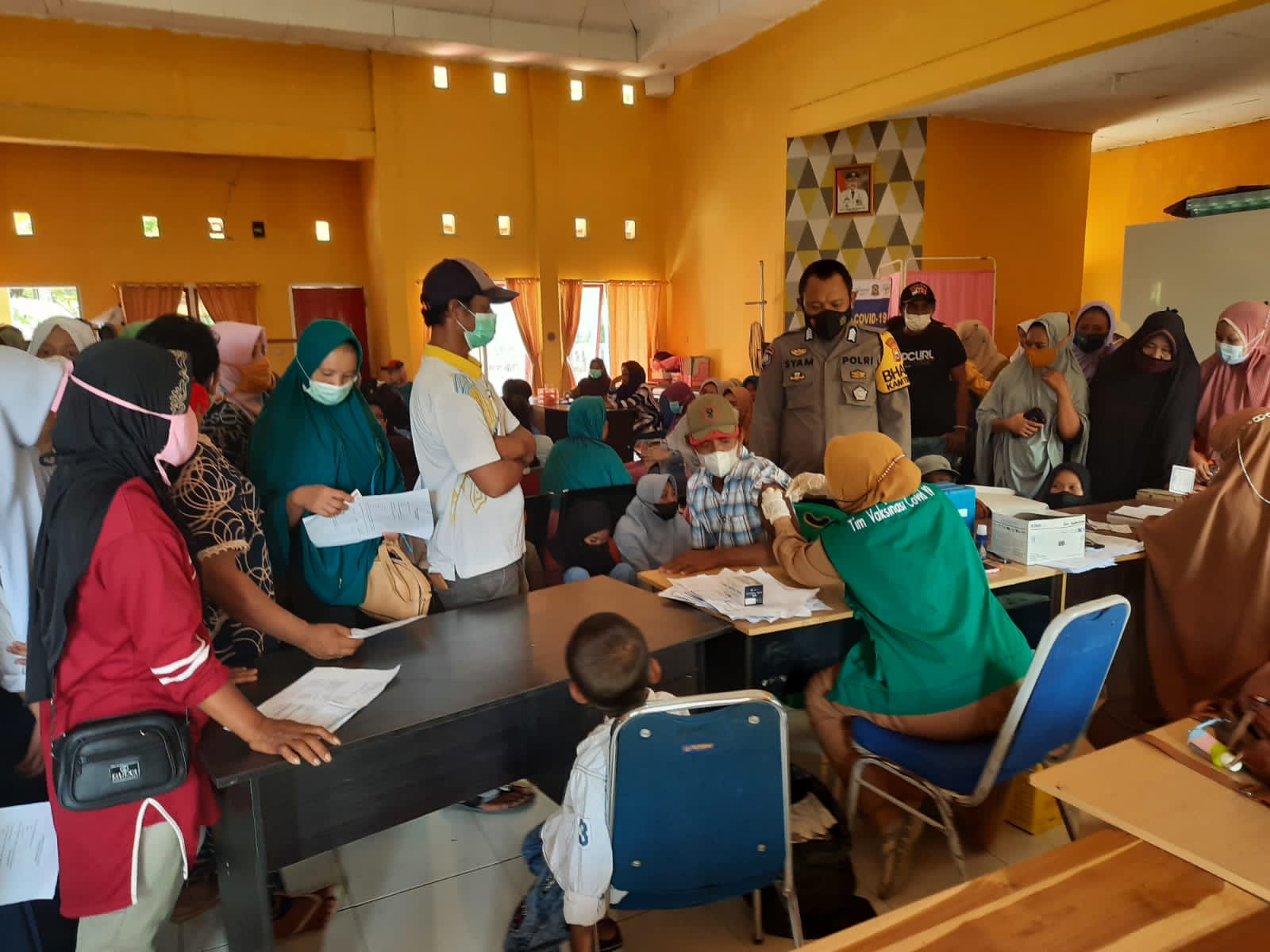 Selanjutnya Bhabinkamtibmas juga memberikan pesan pesan kamtibmas serta menghimbau prokes kepada masyarakat peserta Vaksin.
