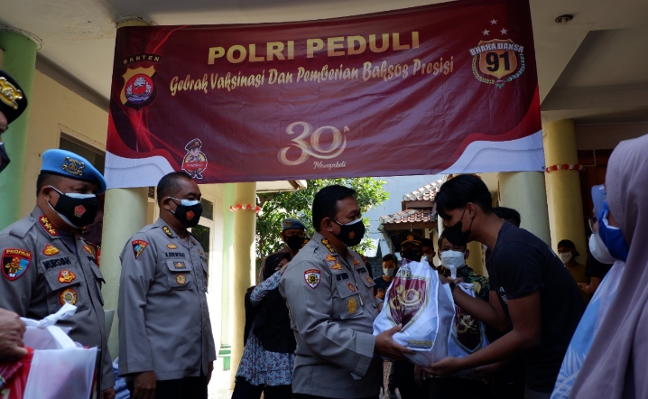 Kapolres Serang Kota AKBP Yunus Hadith Pranoto, S.IK., M.Si., melalui Kapolsek Cipocok Jaya Kompol Agus Suprianto, SH., mengatakan, hari ini melakukan acara gerai vaksin presisi dan pembagian bakti sosial dari Polres Serang Kota dan Akademi Kepolisian angkatan tahun 1991.
