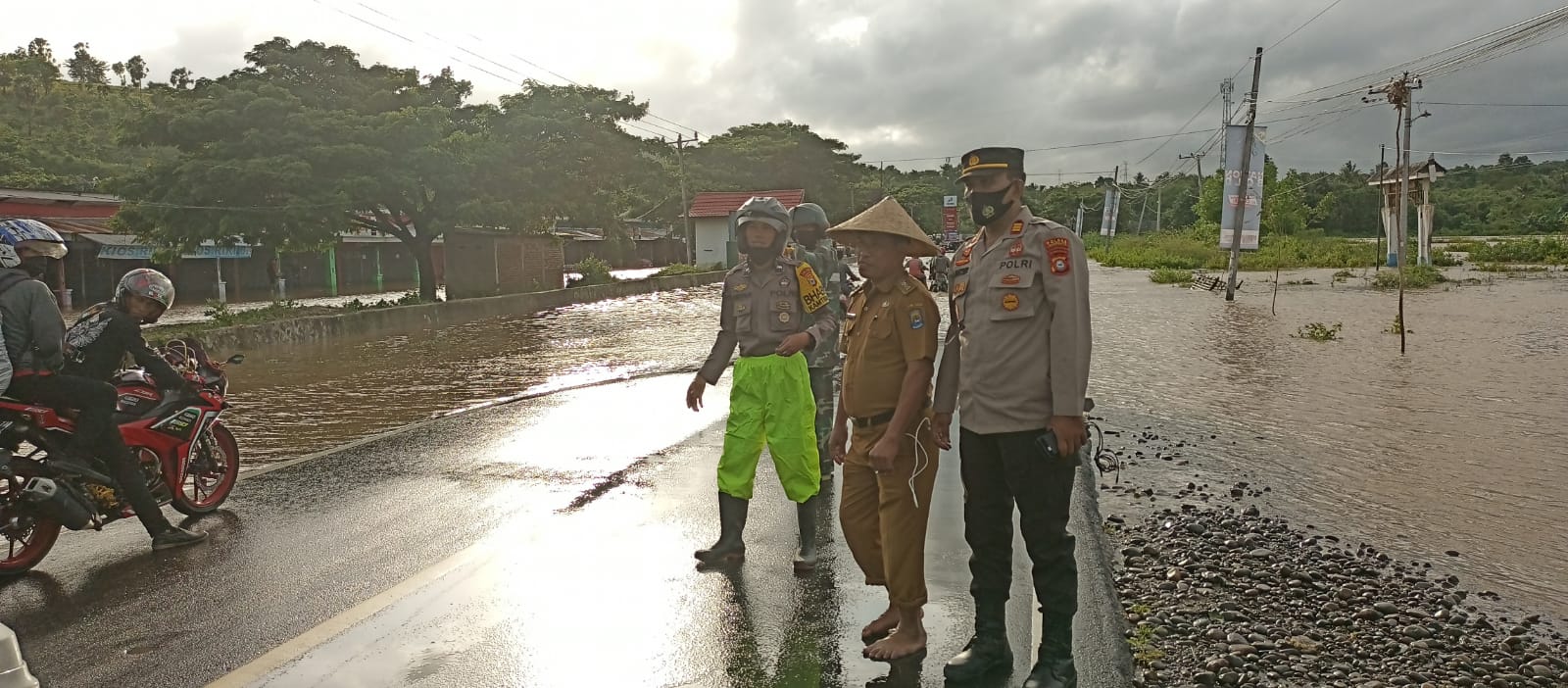 “Seperti melaksanakan pengawasan dan pengaturan lalu lintas guna memperlancar kendaraan yang tersendat akibat air tergenang. ” ungkapnya