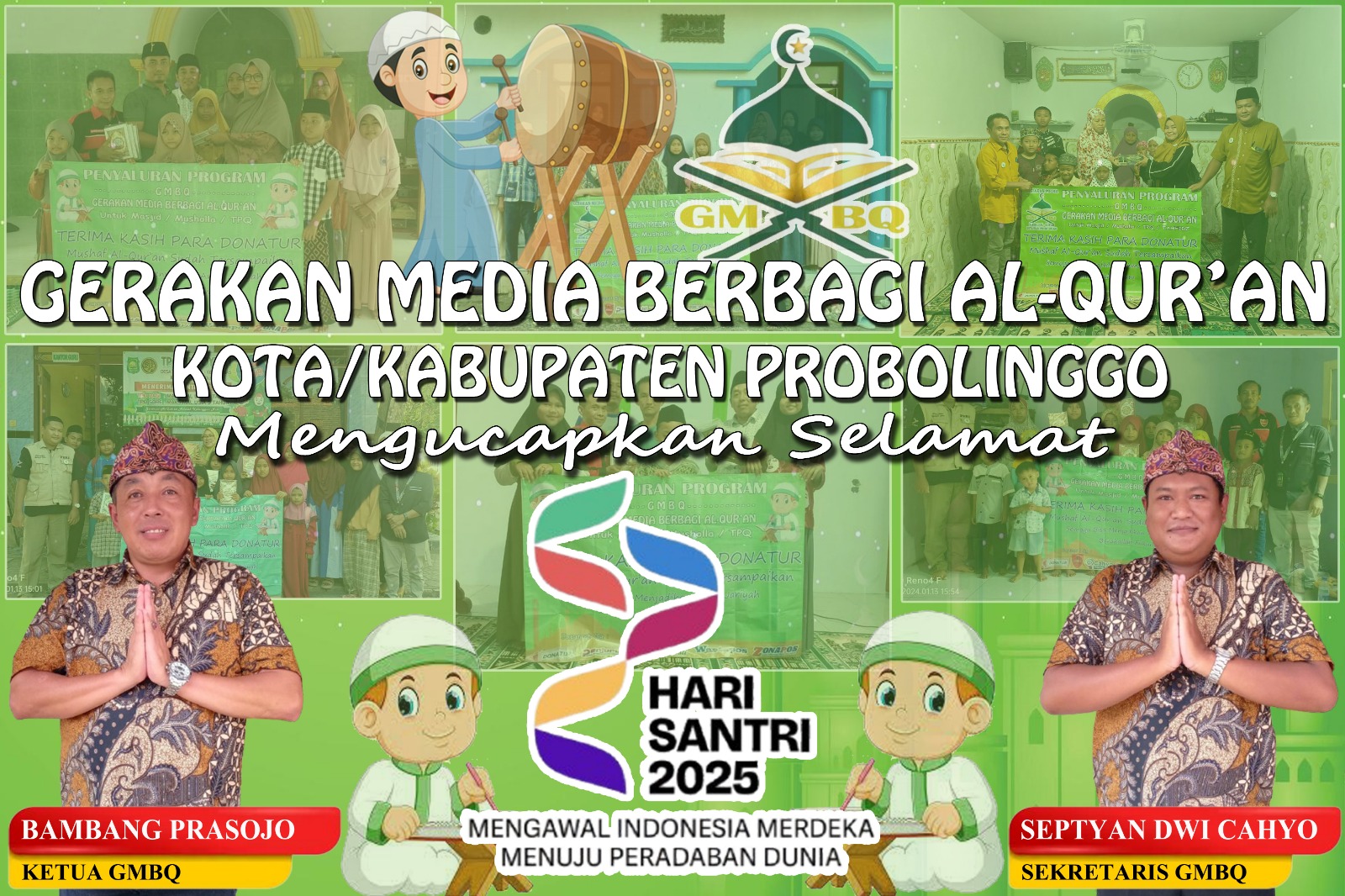 Ribuan ucapan Selamat Hari Santri pun terpancar dari kalangan pejabat maupun organisasi kemasyarakat hingga para komunitas salah satunya dari Komunitas Gerakan Media Berbagi Al – Qur’an (GMBQ) Kota/Kab. Probolinggo.