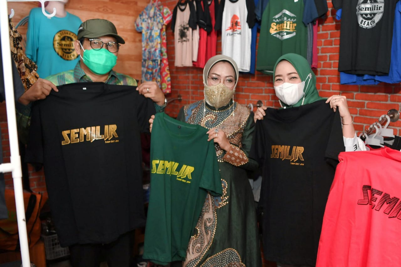 Seusai berbicara, Gus Menteri ditemani Fauzan Fuadi menyambangi satu persatu outlet yang berdagang di Pantai Semilir ini.