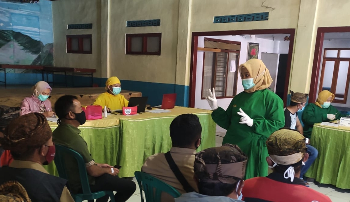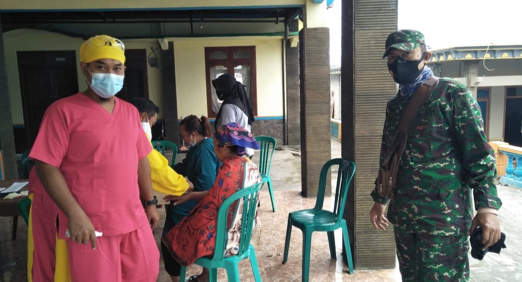 PENJURU.ID | Probolinggo – Masih ditengah hiruk pikuk Suasana Lebaran, Babinsa Koramil 0820/08 Sukapura, tetap semangat agar selalu dekat dengan masyarakat binaannya, untuk memberikan rasa aman dalam pelaksanaan vaksinasi Covid 19 yang berlangsung di Desa Jetak, Kecamatan Sukapura, Kabupaten Probolinggo. Senin (17/05/2021)