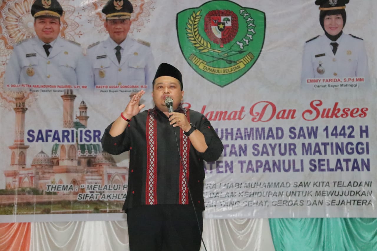 PENJURU.ID | TAPSEL – Bupati Tapanuli Selatan Dolly Putra Parlindungan Pasaribu menghadiri acara safari Isra’ Mi’raj Nabi Muhammad Saw 1442 H , yang diadakan di Gedung Istana Hasadaon, Desa Sialang, Kecamatan Sayur Matinggi, Kabupaten Tapanuli Selatan ( 25/3 ).