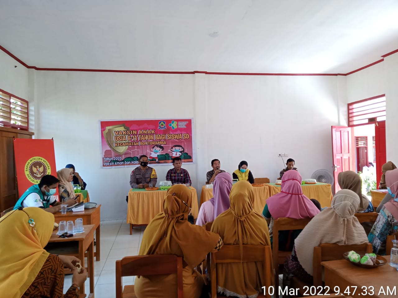 Dalam pelaksanaanya, Korwil Bontoramba Alpian Munir,S.Pd. M.Si membuka rapat sosialisasi vaksinasi anak usia 6-11 tahun yang turut dihadiri oleh bhabinkamtinmas Aiptu Sahabuddin,SHi.
