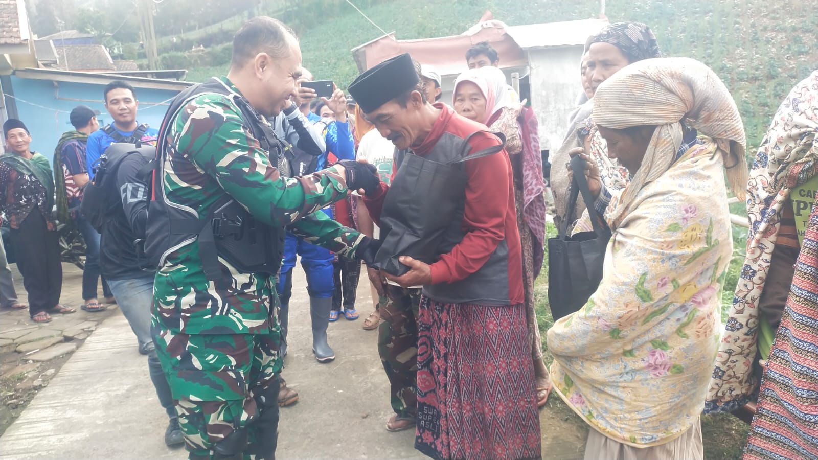 PENJURU.ID | Probolinggo – Kodim 0820/Probolinggo Letkol Arh Iwan Hermaya bersama Kapolres Probolinggo AKBP Wisnu Wardana melakukan penyerahan bantuan sosial dalam rangka hari ulang tahun Bayangkara ke 79 tahun 2025 di Desa Sariwani, Kecamatan Sukapura, Kabupaten Probolinggo, Sabtu (21/6).