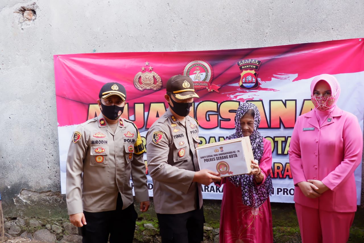 Dalam kegiatan tersebut, Polres Serang Kota Bhayangkari Cabang Serang Kota memberikan bantuan berupa paket sembako dan beras kepada para Purnawirawan dan Warakawuri.