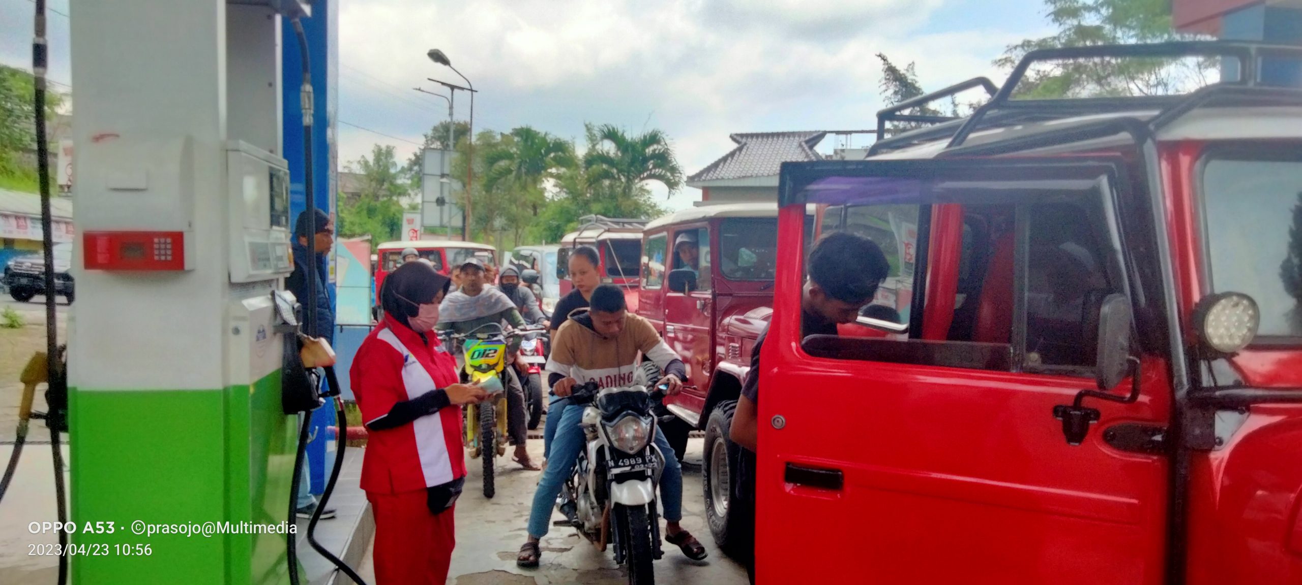 Dari kemarin antrian BBM di SPBU 55.672. 20, mulai padat merayap namun stok BBM masih terpenuhi, dan masyarakat banyak mengantri BBM jenis Pertalite.