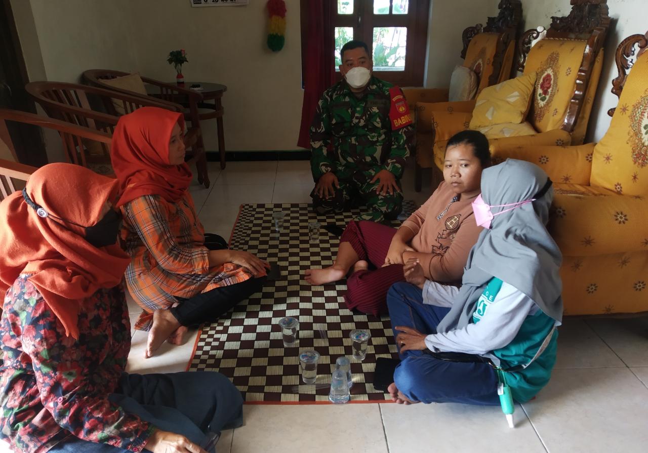 Didampingi Babinsa Setempat Sertu. Supriyanto mereka bertiga berikan bantuan berupa sembako kepada Ananta, anak yatim yang mengalami kelumpuhan, Kamis, (18/11/2021).