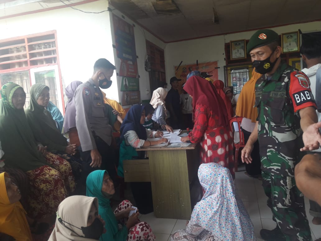 Di dampingi oleh Babinsa Serma Abd Rahman, Aipda Abdul Muis memberikan himbauan kamtibmas kepada warga masyarakat yang antusias datang melaksanakan pemberian vaksinasi.