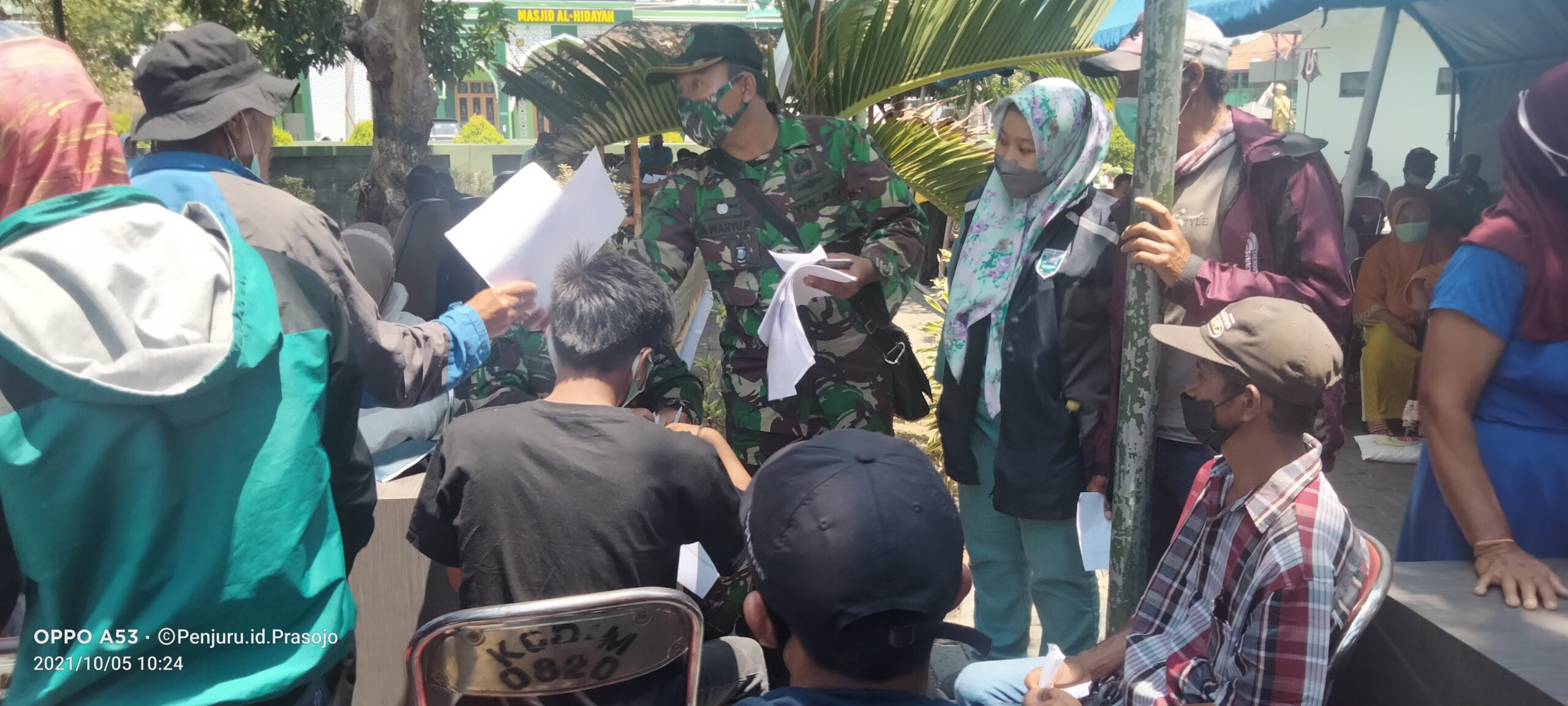 PENJURU.ID | Probolinggo – Meriahkan HUT ke 76 anggota Koramil 0820/08 Sukapura, mengawal warga binaan untuk mengikuti Vaksinasi masal Covid 19, di halaman Kodim 0820/Probolinggo. Selasa (05/10/2021)