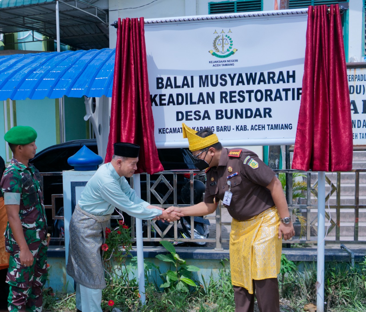 PENJURU.ID | Aceh Tamiang – Saat meresmikan Rumah Keadilan Restoratif Kampung Bundar, Kecamatan Karang Baru, kepada Bupati Aceh tamiang, Mursil, SH, M.Kn, Kepala Kejaksaan Negeri, Agung Ardyanto menerangkan, Rumah Keadilan Restoratif Justice ini merupakan pelayanan dalam upaya menegakkan keadilan yang hakiki.