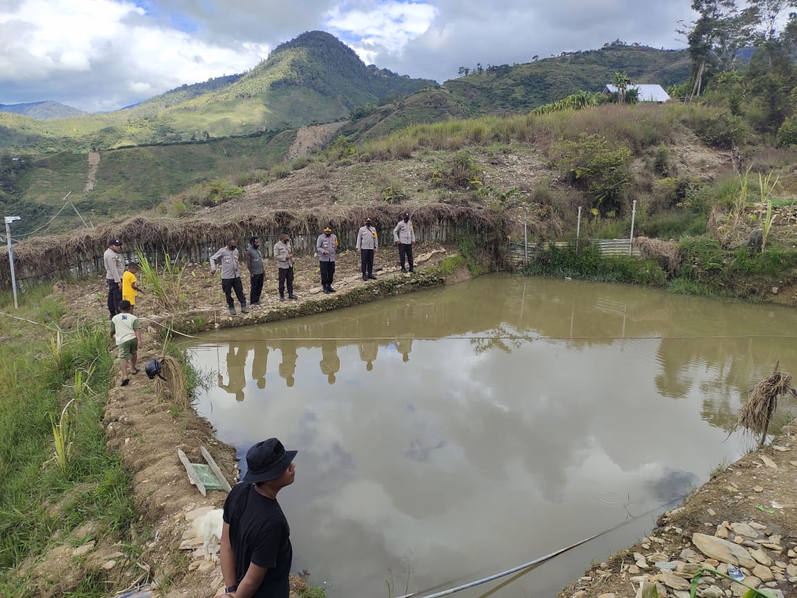 PENJURU.ID | Tolikara – Dalam meningkatkan pertumbuhan ekonomi di bidang perikanan, Kapolsek Karubaga membuka Kolam ikan untuk pembibitan ikan lele, Selasa (27/04/2021).