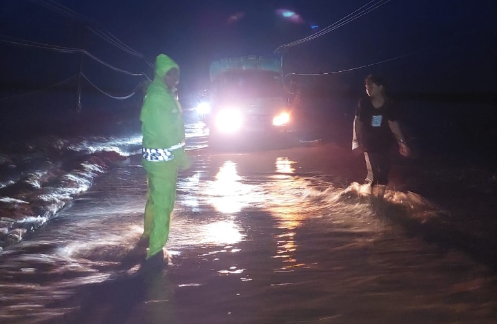 “Curah hujan yang cukup tinggi mengakibatkan genangan air di beberapa ruas jalan di wilayah kami, untuk itu kami selaku bhabinkamtibmas mengingatkan pengendara untuk tetap berhati-hati dalam berkendaran.” imbau Aipda Sudirman.