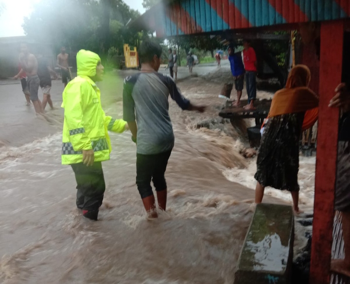 “Selalu waspada akan bahaya dari cuaca ekstrem seperti bencana banjir dan angin kencang serta beri himbauan protokol kesehatan. ” imbau Bripka Muhtar