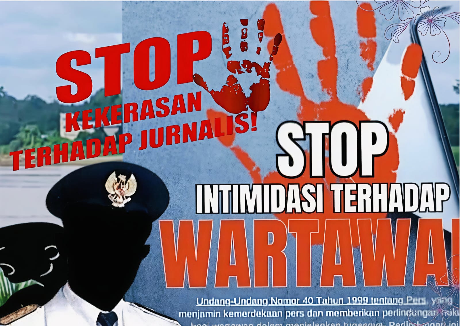 • UU No. 40 Tahun 1999 tentang Pers: Menghalang-halangi tugas jurnalistik adalah tindak pidana (Pasal 18 ayat 1) dengan ancaman penjara 2 tahun atau denda Rp500 juta.