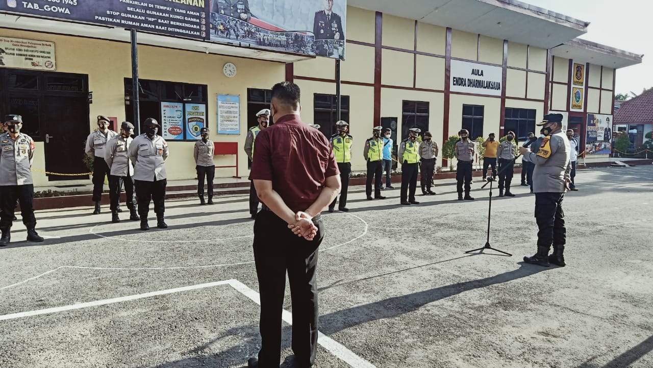 Kabag Ops Polres Gowa didampingi Kasat Narkoba dalam penekanam yang disampaikan agar, seluruh personil yang siaga hari ini tetap eksis dalam mengantisipasi setiap perkembangan situasi yang ada.