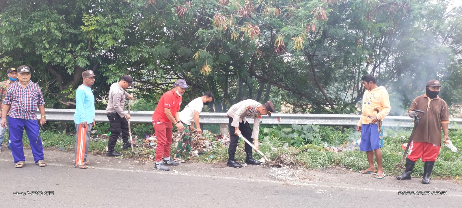 PENJURU. ID | Jeneponto – Kapolsek Batang Iptu Yasiruddin terjung langsung membersihkan semak belukar dan sampah yang sudah menumpuk di pinggir jalan raya poros jeneponto-makassar tepatnya di Desa Pao Kecamatan Tarowang, Sabtu (17/12/2022).