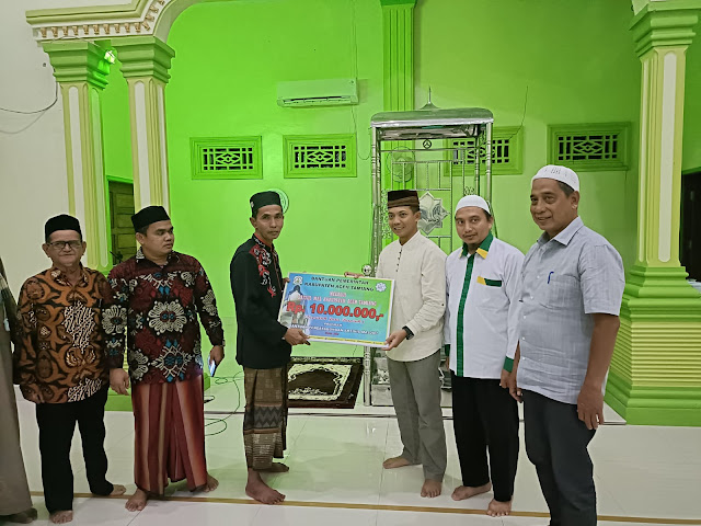 Usai penyampaian ceramah dilanjutkan penyerahan bantuan oleh Komandan Kodim 0117/Aceh Tamiang Letkol Czi.Alfian Rachmad Purnamasidi, S.IP, MSI. berupa uang sebesar Rp. 10 juta dari Baitul Mal Kabupaten Aceh Tamiang yang diberikan secara simbolis kepada Badan Kemakmuran Masjid ( BKM ) Al Hidayah Kampung Bandar Mahligai, Kecamatan Sekerak, Kabupaten Aceh Tamiang.