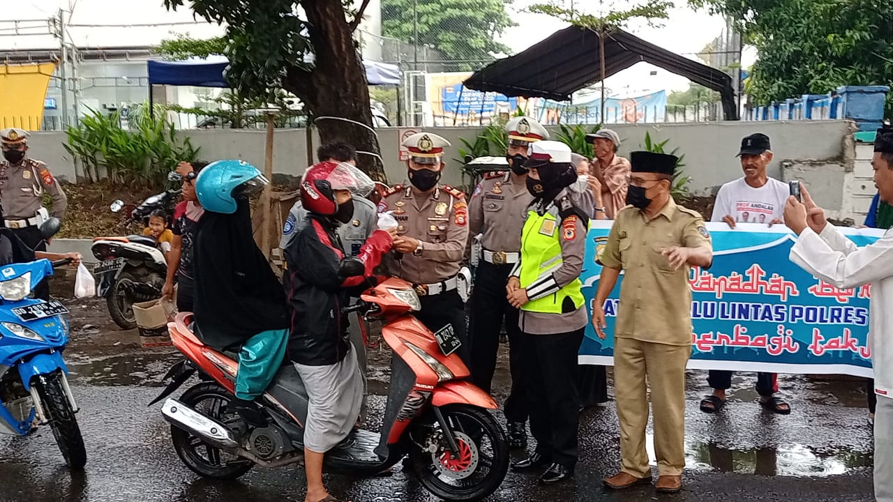 PENJURU. ID | Jeneponto – Jelang waktu berbuka puasa, Sat Lantas Polres Jeneponto berbagi Ta’jil kepada pengguna jalan.
