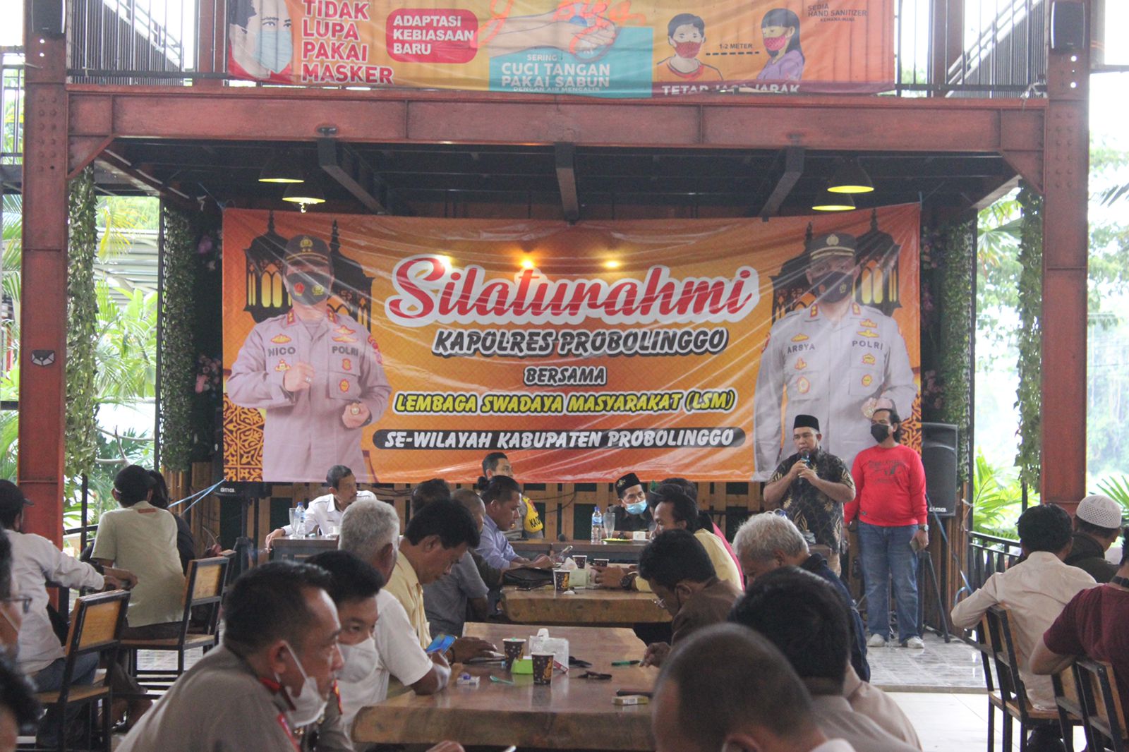 PENJURU.ID | Probolinggo – Kapolres Probolinggo gelar silaturahmi bersama Lembaga Swadaya Masyarakat (LSM) se Kabupaten Probolinggo, digelar di salah satu resto dengan nuansa sederhana dan menerapkan protokol kesehatan, di Resto J’Bing, Kecamatan Dringu, Kabupaten Probolinggo, pada Senin (21/2/2022) sore.