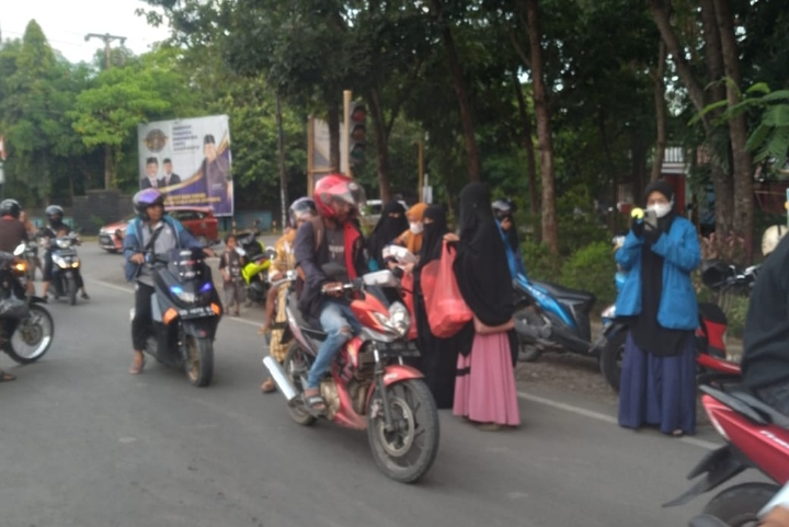 PENJURU. ID | Jeneponto – Dewan Eksuktif Mahasiswa Institut Agama Islam Al-Amanah Jeneponto melakukan bagi-bagi Takjil kepada para pengguna jalan di Pertigaan Belokallong, Kota Kabupaten Jeneponto, Jumat (22/04/2022)