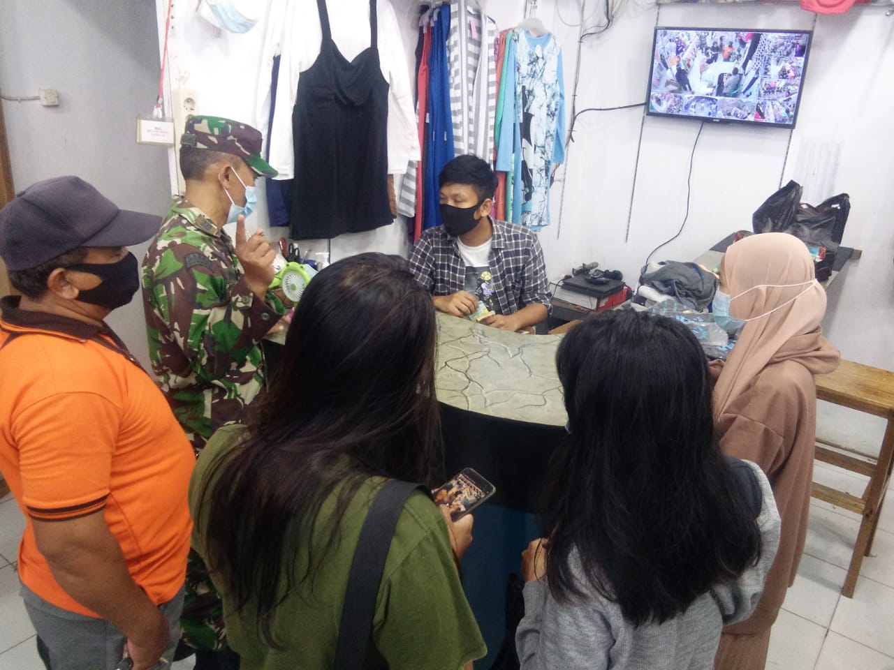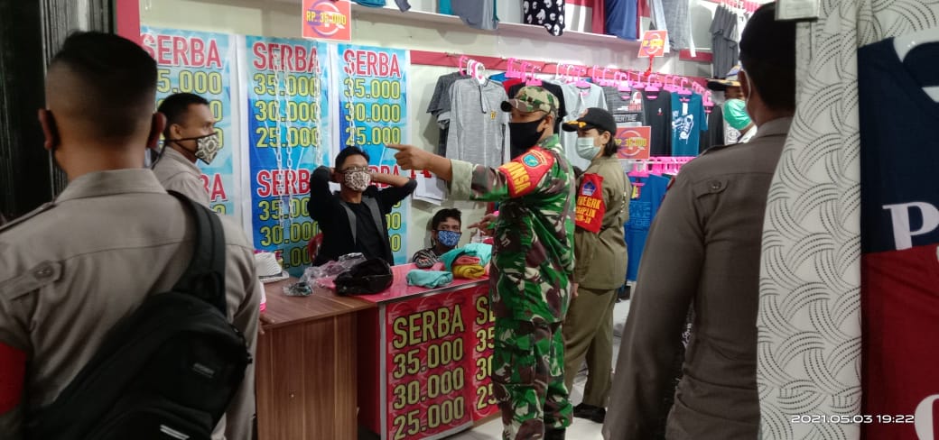 PENJURU.ID | Sintang – Membludaknya masyarakat berbelanja persiapan menjelang lebaran, Koramil 1205-01/Nanga Pinoh bersama intansi terkait lainnya melaksanakan pendisiplinan protokol kesehatan terhadap pengunjung ditempat-tempat perbelanjaan di sekitar Nanga Pinoh, Kabupaten Melawi, pada hari selasa (4/5/2021).