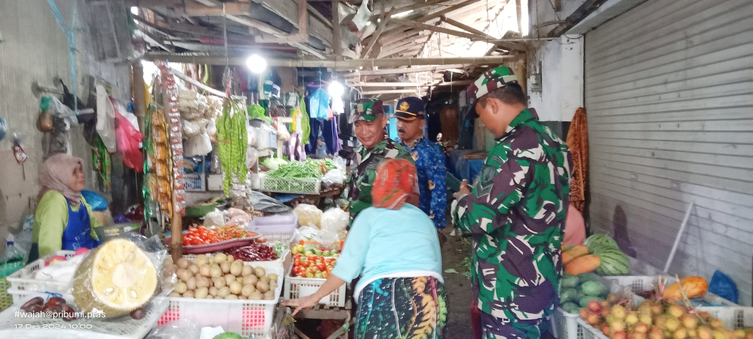PENJURU.ID | Probolinggo – Jelang hari raya natal dan tahun baru (Nataru) anggota kodim 0820/Probolinggo melalui jajaran Koramil Sukapura, melakukan pengecekan ketersediaan dan harga sembako di pasar tradisional sukapura. Selasa (17/12/2024)