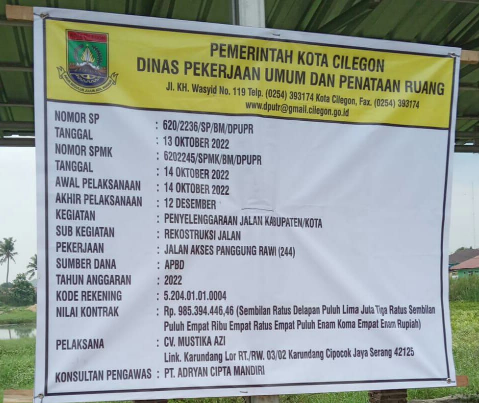 Cilegon. Terkait dugaan gagal kontruksi kegiatan Rekontruksi/Bentonisasi jalan Kubang Laban atau jalan akses Panggung Rawi yang di nyatakan Lembaga DPD Paguron Jalak Banten Nusantara (PJBN) kota Cilegon mendapat tanggapan dari Pelaksana CV.Mustika Azi.
